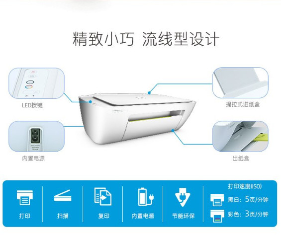 - 型号:DeskJet 2132,白色机身设计,尺寸425×304×149mm,重量3.42kg