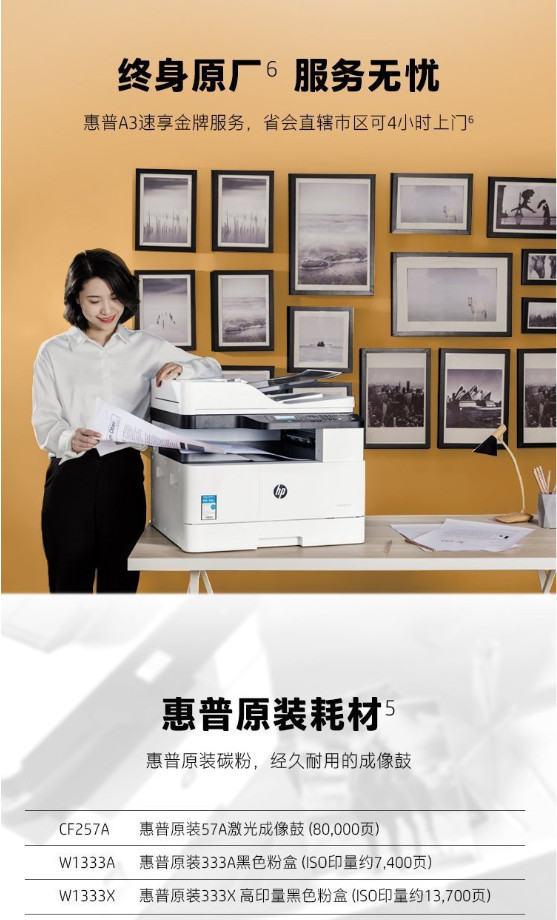 - 硒鼓型号:惠普原装333A黑色粉盒(约7,400页)、333X高印量粉盒(约13,700页)
